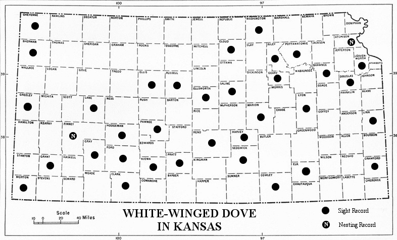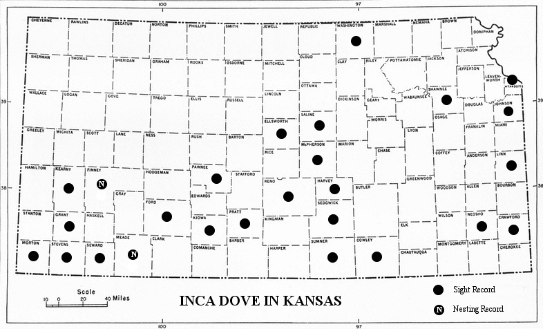 Lloyd Moore has collected and organized the records for various uncommon doves in the state of Kansas. Simply click on the links below for textual data or graphical data (maps). Lloyd (and the Kansas Bird Records Committee would also appreciate it if you could send him sighting records, breeding records, or other observations of any of these species. Hotlinks to Lloyd's email address are found on each page.